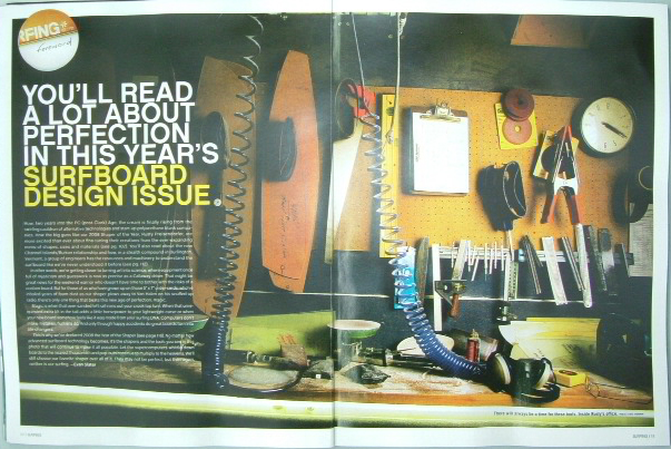 カバーショット RUSTYはプレーナーを持ってシェーパーとしての誇りを! 左のサーフィン写真はJordy Smith このページからシェーパーとしてサーファーとしてのRUSTYの特集ページが始まる。 RUSTY自身のシェープルーム 。綺麗に整理整頓され、このルームから新しいアイデア、モデルなどが次々考案され、形になりシェープされる。2007年はWCTで活躍したJosh・Kerrのニューモデルとして考え出されたDOUBLE D Model、そしてSTEALS QUAD PRO-JECT QUAD またコア材(ブランクス)においてもメーカーと協力し パラボリックEPSやニューEPSを開発、ボードの性能においても重要なFINでもFUTURE FINと共にVⅡ-FR1を筆頭にVECTORⅡ454 VECTORⅡ435の開発に携わっている。 また 新しい材料を使用したボードの開発も進んでおり、TUFLITEから発売されたRUSTY AIRKKER TL2はJosh Kerr以外の選手からも最高の評価! AVISOボードにもプラグボードを提供!RUSTY AVISO 6’2”PROJECT JOB Modelは先ほど行われたWQS NEWPORTで優勝したNate Yeomans達からも絶大な評価を受けている。そしてVXなどの最新技術を駆使したラミネート工法にも力を注いでいることは言うまでもありません。 シェーパーとして一番大切な事はライダーの要求に応える事!本人の周りには常にライダーがいて、海でもライダー達のサーフィンを見て サーフボードに反映させる。今も昔も基本的なことは変わらない。 毎年3月にFIJI TAVARUAで行われているRUSTY CREW SURF CAMPでは世界中のRUSTYライダー、世界中のRUSTYシェーパー達が集まり、アイデアを持ち寄り、意見を交換するサーフサミットが行われている。 シェーパーとしてだけでなくRUSTYはサーファーとしても写真のような波でも難なく乗りこなす大男! これだけのニュースやソースなどを持ち合せているのはSHAPER OF THE YEARに値するものです。 まだまだ 進化するRUSTYブランドにご期待下さい。 RUSTY-JAPAN KAMA いよいよRUSTY Surfboadsから世界的に話題のパラボリックブランクスが登場します。パラボリックのパフォーマンスは今更言うまでもありません。RUSTYはさらに一歩先を進んでいます。