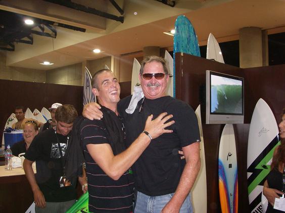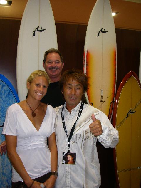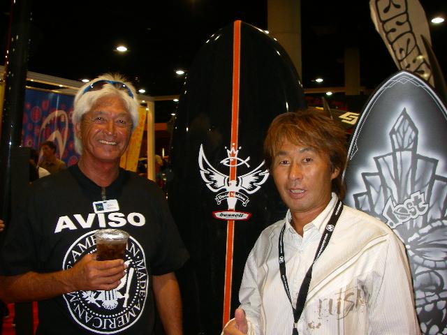 もちろんインターナショナルブランドRUSTYも出展!ブースは例年通りの大賑わい!!サーフボードを作らせれば世界一のRUSTY!様々なサーフボードが展示されています。 左/こんなボードも作ってしまいます。中左/あえて古いボードのように見せて作ることもできてしまう。中右/今話題のパラボリックボードも他社が抱える問題も解消し、強度・しなり・軽さと全ての面で1歩先に進んでいます!右/2008年のTUFLITE PIRANHAはこんなデザインに!? 左/ラスティーとアメリカのトップレディースプロでラスティーサーフボードが大のお気に入りのホリー・ベックは会場内でも大人気!中/バリのアップカマー、マーロンもバリから参加。右/日本からはNIKKI社RUSTY Divの人達も来期に向けて来場。 左/ラスティー親子のコラボ。父は世界に名を馳せる名シェーパー、息子はメジャーリーガー!!右/ニューヨークヤンキース所属のラスティー家長男のクリント。会場内でテレビのインタビューを受けていました。 AVISOブースもRUSTYブース同様に大人気!!あのカリスマサーファー、デビット・ヌヒアもAVISOチームに参加。 世界のタカヤマもAVISOの性能にぞっこん!AVISOのロングボードでエアーをしちゃうスーパースター、CJネルソン。 ラスティーの自宅で行われたインターナショナルミーティング。各国のボス達が集結。オーストラリアのジェフ(写真中央)、ブラジルのペドロ(写真手前)、アメリカからはもちろん我らがラスティー(写真左)そして日本から私が参加しミーティング。ミーティングと言ってもサーフィン大好きなサーファーが4人も集まれば、話はいつもサーフィンかサーフボード、波、世界のライダーの話ばっかり・・・。しかししっかり本題もあり有意義な時間。 言わずと知れたRUSTY USAからいつもHOTなニュースをくれるMart Fujita!波はいつものカリフォルニア。朝はグラッシーで昼からは風が吹く。 RUSTY-JAPAN KAMA 今日は千葉御宿でサーフしたんですが、サイズは肩ぐらいでそこそこの波でした。