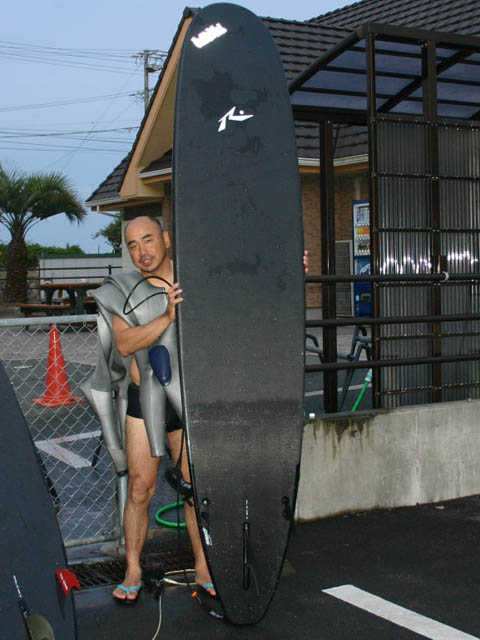 ■名前/阪本 修平様 ■住所/岐阜県 ■年齢/37歳 ■身長/175cm 体重/ 75kg ■サーフィン歴/ 20年 ■ホームポイント 伊勢 伊良湖 使用商品のデータ ■モデル名/RUSTY CLASSIC LONGBOARD CUSTOM ORDER Pigment Volan Cloth使用 ■サイズ/長さ:10.00 幅: 22.5 厚さ: 3.0 ■ご使用になられた感想等どうぞ!このボードの5本目になるRUSTY ロングボード 12月にオーダーして手元に届いたのが6月 約半年待った甲斐あって オーダー以上にできていました さすがRUSTY アメリカへ行ってお礼を言いたいぐらいです。カラーも相変わらずオーダー通りにしてくれなくて オーダー以上の出来栄えに今さらながら感動します。そして先週 日曜日に進水式!これまた予想以上の性能に感動 他のライバルには見せたくないくらいのボードです。 やっぱりRUSTYです。ボード作りは世界で一番ですね!?このボードで今週末の支部予選に出ようかな?波次第で!! ■満足度 ★★★★★ PS 先日6月10日(日)伊勢 国府の浜で行われた日本サーフィン連盟 大阪支部予選でこのボードを使用 メンクラス3位になった事を付加えさせていただきます。 左から3番目 右の写真は同じくRUSTYボード愛用 レディスクラスで優勝した石川裕子さんです。(一番左) 阪本様 ありがとうございます。ほめすぎるくらいほめて頂いて!次回にアメリカへ行った時にRUSTYに伝えておきます。喜ぶと思いますよ!あっ!もうすぐRUSTYの誕生日です。その時に伝えておきます。私は彼の誕生日にいつも何かプレゼント送っています。彼も私の誕生日には何か送ってくれています!去年はEPSのサーフボードを2本もプレゼントしてくれました。ありがたい、ありがたい、 RUSTY-JAPAN KAMA ライダーズ情報