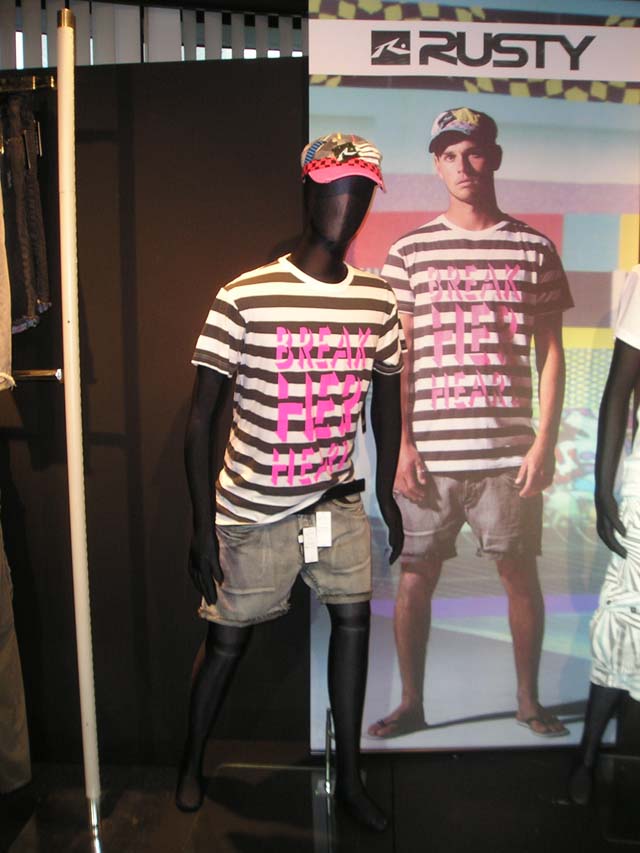 RUSTY DESIGN TEAMのNAKAJIです。 先日SUMMER 2008の展示会も終了し、今は2ND SUMMER 2008に向けて企画進行中です。 2008年RUSTY春夏の商品と傾向をご紹介します。 2008年からオーストラリア本社との直接契約に変わった事から、オーストラリアのデザインソースを取り入れたアパレル商品企画となりました。 なんと言っても1980年代をイメージさせるネオンカラー中心のカラーリングに注目!!そこにグリッター使いの光り物をポイントとしたトレンドディテールを軸に商品を構成しています。 ボーダーTシャツにもネオンカラーのメッセージを大胆にプリント。 RUSTYの文字を前後身頃にプリント。ここでもネオンのフラッシュカラーが登場 GIRLSでは身頃自体のカラーがまさにフラッシュ!! 真夏の太陽の下、こんがり焼けた肌に栄えるネオンカラーに注目です!! BOARDSHORTS ITEMには新たにシグネイチャーモデルが登場 <左はJOSH KERRモデル、右はJAMIE O'BRIENモデル> <右からJOSH KERR、中はJAPANモデル、右はJAY DAVIESモデル> RUSTY BRANDがサポートするライダーの意見を取り入れ、色やカッティングを始め機能性も考えられたCORE ITEMが完成しました。 ご紹介したアイテムは2008年4月発売開始です。 話は変わりますが、先月RUSTY JAPANクルーと久々に海へ。 そこでAVISO初試乗させてもらいました。 率直な感想、なんと言ってもテイクオフが早い!!久々の海にも関わらず勘違い?に陥りましたよ。コンディションは今ひとつでしたが、あらゆる波にも対応できるスペシャルボードだと感じます。見た目も高級感がありますし。 こつこつお金を貯めて手にしたい1本です。 RUSTY-JAPAN NAKAJI |
