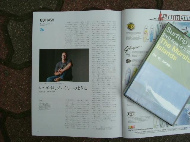 DVD付き¥1.100 DVDには今話題のサーフムービー"Beyond the Break"が一話丸ごと収録されています。 さすが宗豊のテイクオフです。 サーフトランクス特集にはRUSTYボードショーツが掲載されています。 そしてそして SURFTORIP JOUNAL 54号では 先日来日したジェーミー・オブライエンのインタービュー記事が掲載。かなりいい事 言ってますよ!!是非 読んで下さい。>>>こちら おまけにと言うかこれがメーンですが宗豊のDVDと言っても過言ではないほど宗豊が出てきます。 太平洋のど真ん中にあるマーシャル諸島のサーフィンががっつり入った映像です。映像でマーシャル島はこれが初めてだと思います。かなりいい波がブレイクしています。旅好きサーファー必見。本文中でも14ページ特集が組まれています。 DVD付き¥1200は即ゲットですよね!? ジェーミーのインタビューも必見です。そしてこのページからマーシャル島 特集が始まります。 RUSTY-JAPAN KAMA オーガニック コットン