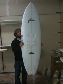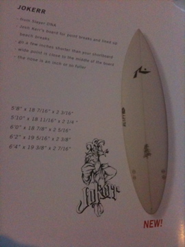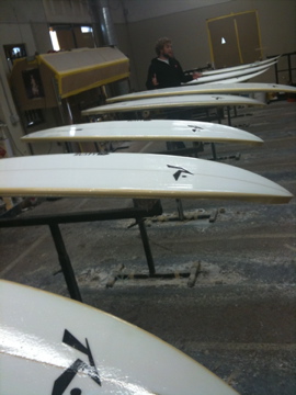 SAN DIEGOのmartです。 ほんとに久しぶりに工場に行って来ました。 久しぶりに行っても やっぱり出迎えてくれたのは クリス君。 相変わらずのスタッフ達の様子に一安心。 RUSTYさんやRICKさんも元気そうに スタッフと打ち合わせしてました。 Rマークのボードが所狭しと ラミネート中。 そして、やっぱり気になるのがニューモデル達。 早速、クリス君に聞いてみると とりあえず俺について来いとの事。。。 ついて行く途中にRUSTYさんが シェープ中の所をパシャ!! そしてニューモデル紹介スタート!! まずは、クリス君一押しの『STUMP』。 このボードは僕の大好きな『MOD FISH』の進化版。 そして次は、『HUSTLER』。 実のこのモデルは結構前からあったんですが、 2010年チームライダー達の間で短い『HUSTLER』が大流行。 新しいテンプレートでリニューアルです。 そして、『DOZER』。 このモデルはまさにeveryday board!! コレは幅広く使える一本です。 次の2本は、『JOKERR』と『CHOPPA』。 この2モデルは『Inspired by Josh Kerr』。 どちらも『SLAYER』のDNAを持ったモデル。 『RUSTY』+『JOSH KERR』=『間違いない!!』 になりますよね。 う〜ん、乗ってみたい!! 番外編は、『NATE YEOMANS』の『JOKERR』。 テールのサイド部分ははカーボンで強化!! そんな所にも足置くんか!? そして、僕の地元のヒーロー。 T,I氏のボードもオーダー通り順調に 仕上ってました。 いや〜、やっぱりココは面白いです。 ウロウロしてるだけでワクワクしてきます。 RUSTY-SAN DIEGO MART こんにちは。