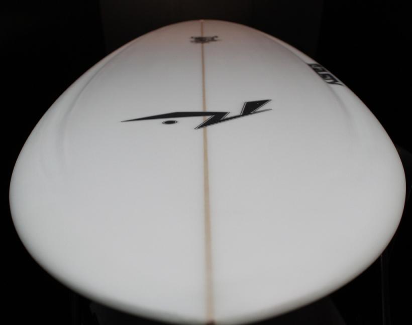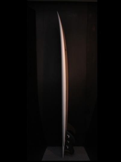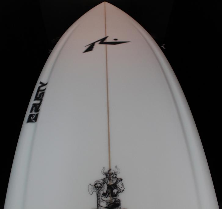 なかなか試乗の機会に恵まれず、ようやくここ1か月近くこれを乗り込めました。 そして得た感触は・・・・、 好感触! ビーチブレイクで波のサイズはだいたいモモ・コシ~ハラ、最大ムネくらい。多くはダラダラッとした感じの時が多かったので、クワッドフィンの設定で試乗。 テイクオフ早っ!(驚) パドル時の安定感は抜群で、特徴的なコンケーブ(ヴェンチューリボトム)とテールロッカーの絶妙なバランスのせいか、スッとボードが滑り出してくれます。 テイクオフ後も厚めのレールを感じさせない回転性で、特異な形状のハードウイングスワローのテール形状のおかげか、スピードと扱いやすさがウリと言うことを納得させられるスムーズなターンが可能。またカットバック時もキュッキュッと動いてくれる。良い感触。 *ヴェンチューリボトム *ウイングスワローテール もう少し大きめでパキッとした波でも、スラスターの設定でも、色んなシーンで試してみたいです。 身長171cm体重62kgの私には5.10というサイズは少しばかり大きいかな。5.8くらいが良いかも。 もうRustyさんが次から次と最新鋭のクイーバ達を生み出してくれるので、乗り込みたいボードだらけでもう大変です(笑) RUSTY SURFBOARDS2010のカタログは3月末に全国のRUSTYディラーに発送されます。是非是非、世界屈指のラインアップと最新鋭のサーフボードをチェックして下さい。ついつい、あれも~これも~ってなってしまうこと間違いなし! HUSTLER FIVE ハスラーはスピードと扱い易さがこのボード全てです。幅の狭いノーズとハードなウィングスワローテールは次のステップにぴったり、あなたがまさに求めていたスペックかもしれません。 ヴェンチューリ(ボンザーに近い)ボトム。行動範囲が広がるファイブフィン仕様。加えてビッグなボリュームは、あなたが遭遇するどんな波のコンディションにも最新の性能で応えてくれます。 通常のボードより4~6インチぐらい短めのものにお乗りください。 Tail:Wing Swallow Fins:Five RUSTY-JAPAN NOZAWA 寒さが厳しい今日この頃、皆さんいかがお過ごしでしょうか?