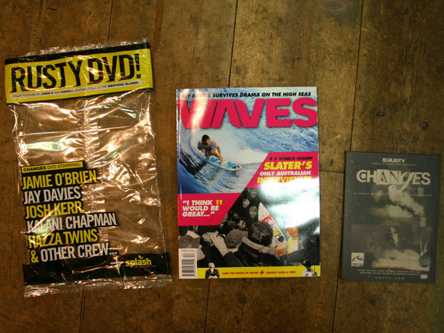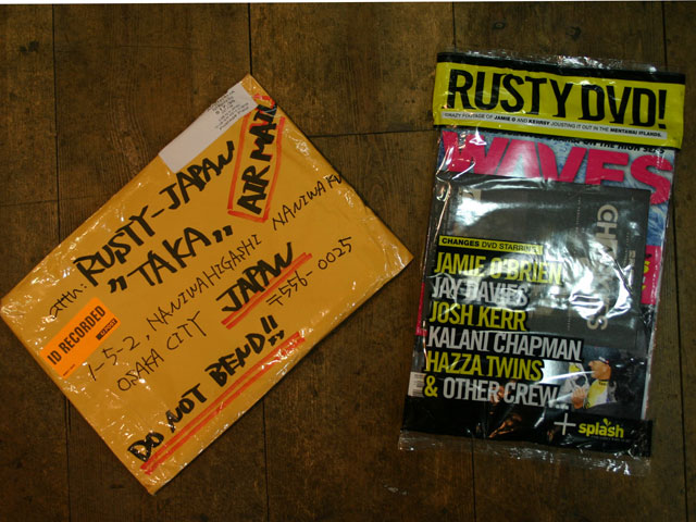 気を取り直して・・・ AUSのNOBBYから嬉しいお届けもの!話題のサーフDVD”CHANGES”!!アメリカの新大統領”OBAMA”さんのキャッチフレーズをまねたわけではありませんが、RUSTY AUSTRALIAから世界中のRUSTYに発信された ラスティライダーによるサーフDVDです。オーストラリアのサーフィン専門誌”WAVES”の付録として付いています。 オーストラリアゴールドコースト在住の特派員 NOBBY、いつもありがとうございます。パッケージの袋はご覧のようにRUSTY DVDと書かれて出演ライダーたちの名前がズラリ!!DVDのパッケージもそのまま販売できそうなものです。しかもエコ素材使用!"GLOBAL COOLING"です! RUSTYの広告はインドネシアのマーロン・ゲーバー、ハワイのバレルオブザイヤーに輝くカラニ・チャップマンのページや マーロンのエアーが続きます。 ジェイ・デービスのエアーの写真やニューカマージェイク・シャープ そしてDVDにも出てくるジョシュ・カーのドックタウンサーフィンのページなど、雑誌内もRUSTY満載です。 インドネシア メンタワイアイランドを中心に撮影されていますが、ハワイやカリフォルニア、オーストラリアと世界中を舞台に。 そしてジェーミー・オブラインエンが登場です! そしてこのDVDで一番最初に登場するジェイのサーフィンは凄いの一言!! 帝王ケリースレーターがコンテスト中に見せるサーフィンよりも凄い!!マーロンのスタイルはいつ見てもきれいなエアーが持ち味です。 この雑誌の付録にはレディースサーファー御用達のSPLASHも付いています。RUSTYはレディースサーファーにも熱い支持を受けています。 このRUSTY DVD”CHANGES”の日本での発表、発売は来春を予定しています。その時には もっと詳しくDVDの内容をお知らせ致します。乞うご期待!! CHANGES プロモーション映像 こちらの映像はバレルオブザイヤー カラニ・チャップマンです。1秒や2秒のチューブライディングではありません。これぞバレルオブザイヤーに相応しいザ・バレルです!! RUSTY-JAPAN NOZAWA PR この記事にコメントする